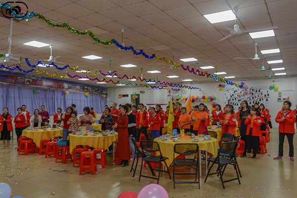 下午五點半過后,大家都陸陸續續來到現場,六點正是開始,奪人注目的主持人真是氣質有嘉、精神氣爽,一句:萬馬奔騰辭舊歲,三陽開泰送春來引出年會的氣息;踏著新年的腳步,讓我們相聚在這美好的時刻,在這激動人心的時刻,2020年睿牛制衣聯歡晚會正式開始了,今年剛好是祖國70周歲,我們的祖國在中國共產黨的領導下日益富強,更加輝煌,在座的各位一起回顧光輝的歷程,難忘的歲月,合唱《歌唱祖國》;