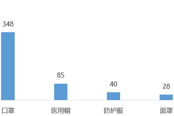 依據(jù)國家藥品監(jiān)督管理局官網(wǎng)的信息進(jìn)行統(tǒng)計,全國生產(chǎn)醫(yī)療防護(hù)物資(口罩、醫(yī)用帽、面罩、防護(hù)服)的企業(yè)共有384家。