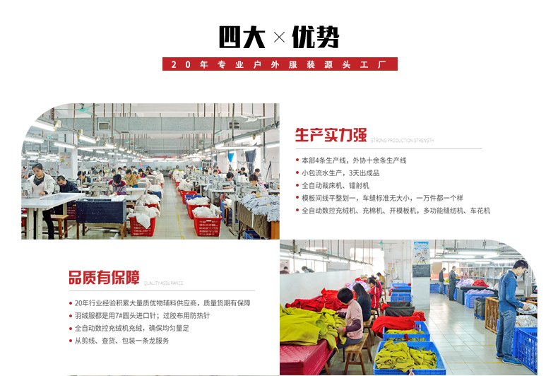 佛山思諾華服飾(睿牛制衣廠)專注沖鋒衣定制生產20年,加工所選用的面料、工藝全部都是可測可查,科學排單生產,進口設備保證品質與交期,可以來樣來圖打版,隨時批量生產,快速發貨。如有需要找定制加工沖鋒衣廠家,可撥打沖鋒衣貼牌代工熱線400-833-0363聯系我們哦。
