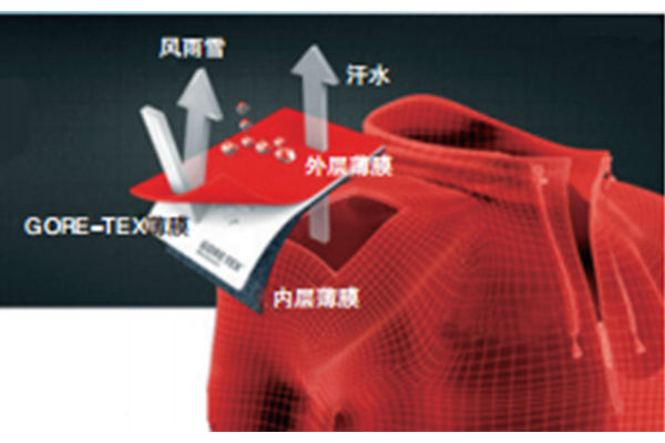 GORE-TEXGORE-TEX面料是世界上第一種兼具防水性、透氣性和防風性三大性能的面料。它的出現,讓防水與透氣這兩個看似矛盾的特性相融合,通過密封性達到防水效果,并通過化學置換反應達到透氣效果,同時具有防風、保暖功能,在歐美被譽為“世紀之布”。GORE-TEX薄膜是所有GORE-TEX產品的核心,特點是每平方英寸上有多達90億個微孔,每個微孔的直徑小于一滴水的兩萬分之一。外部的水分都無法透過薄膜,雨雪交加亦能保護穿著者安然無恙。而微孔的大小是水汽分子的700倍,所以汗液能透過微孔輕易地蒸發掉,干爽舒適有保證。這種技術能在防水的同時保證汗液能順利地蒸發到外界。此外,薄膜中還添加了一種疏油性物質,能防止體油或驅蟲劑對薄膜的損害,這使得用它制成的沖鋒衣更好用,更耐用。