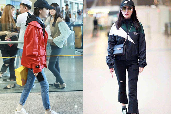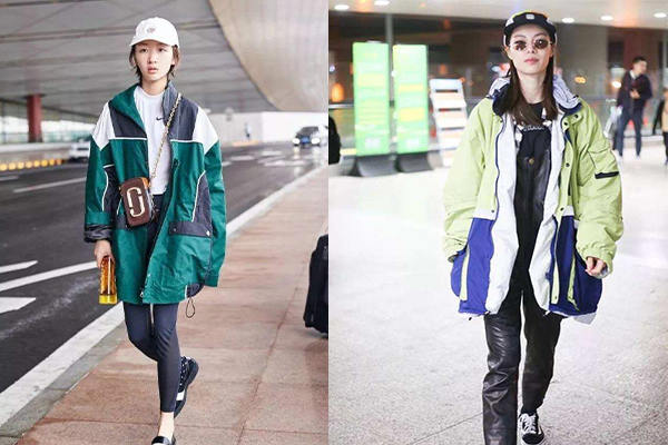 超大碼的沖鋒衣如果搭配不好就會顯得過于臃腫,那么一定要記住上寬下窄的原則?!岸炭?高腰”是永遠不可拆散的好搭檔,瞬間可以把上下身比例拉成3:7,同時記得選擇沖鋒衣時,也要get住這一點哦,拒絕合身形的,大大的版型才是王道,下身要搭配利落的小腳褲才有型,避免過于臃腫肥大的搭配。如果這時再踩一雙有跟的踝靴,你就是街拍的焦點。將領口拉大,秀一把鎖骨。當然如果下身搭配超短褲露出大長腿,也可以達到拉長身形的效果。